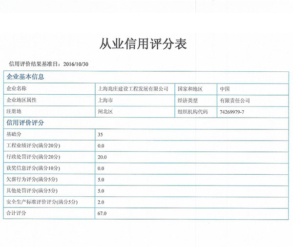 建筑建材业网上信誉评分