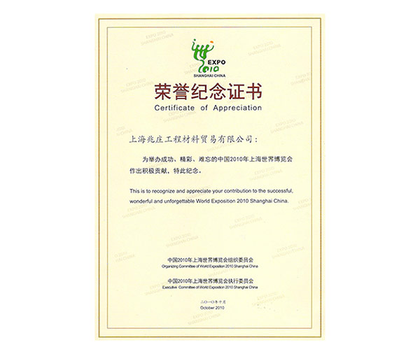 世博荣誉证书